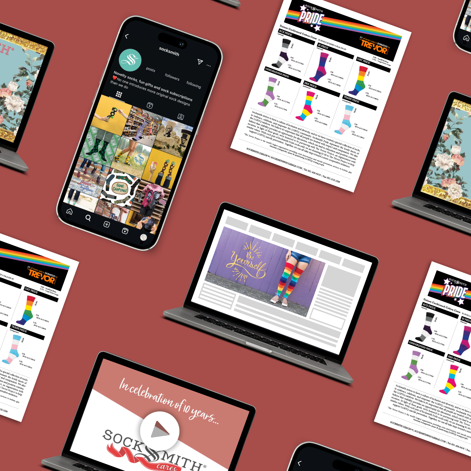Socksmith is a novelty sock brand based in Santa Cruz, CA with both B2B and B2C divisions. With the company being founded on the belief that self-expression is true beauty, Socksmith creates unique, high-quality socks designed to connect people from all walks of life. Their marketing reflects this focus on individuality with bold visuals and engaging copy, serving as a reminder to embrace and celebrate one’s true self unapologetically.